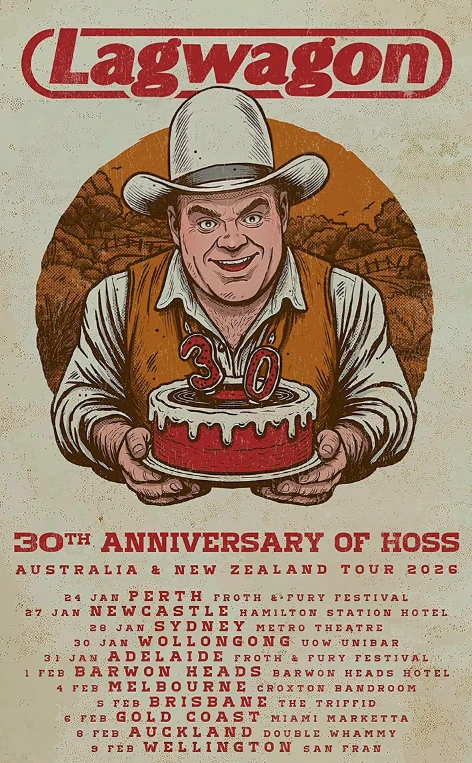 Lagwagon return to Australia in 2026, celebrating Hoss in full with some stacked 30th anniversary shows, as well as an appearance at Froth and Fury Festival. You can find your suitable ticket here!